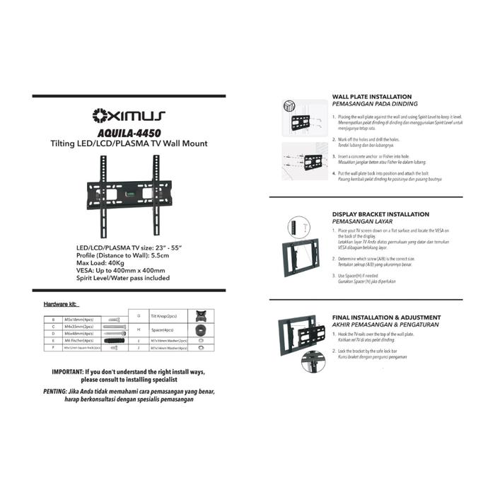 BRACKET TV LED LCD MONITOR 23"-55" OXIMUS AQUILA 4450 WALL MOUNT TILT - AQUILA 4450 Hitam