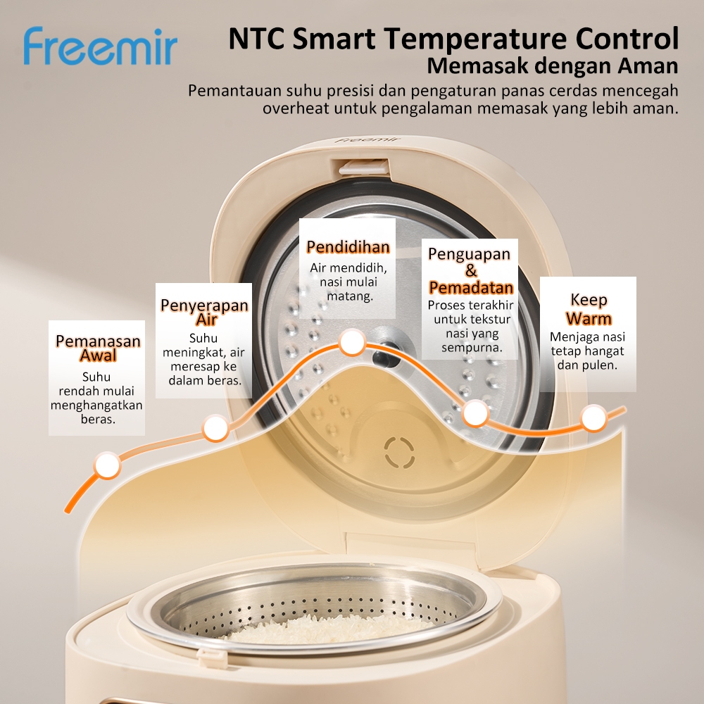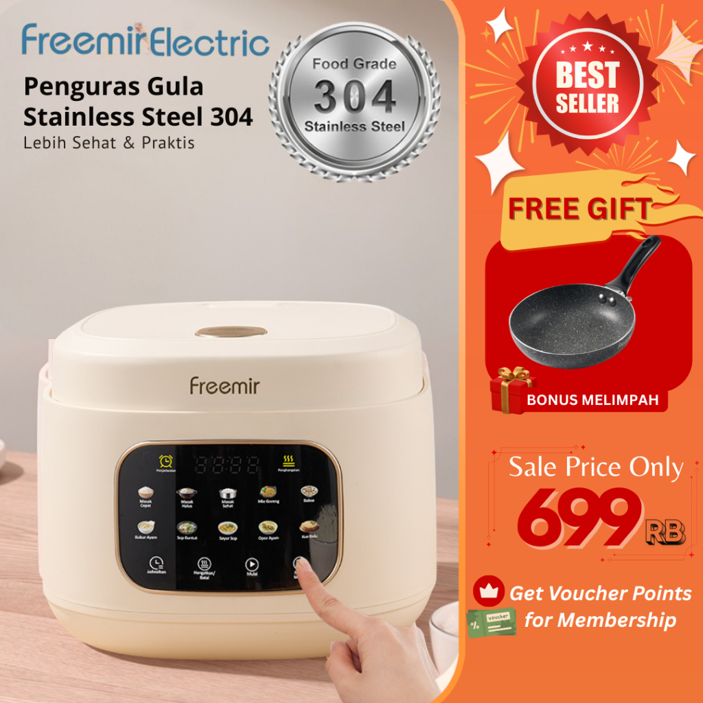 [Star] freemir electric Smart Rice Cooker Digital Rendah Gula1.5L Lapisan Keramik Anti Lengket