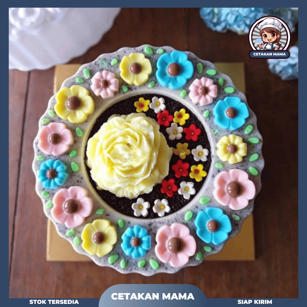 PROMO Cetakan Puding Besar Motif Bunga Plastik Premium 1,2 Liter FREE Pipet / Cetakan Bolu Puding Loyang / Cetakan Agar