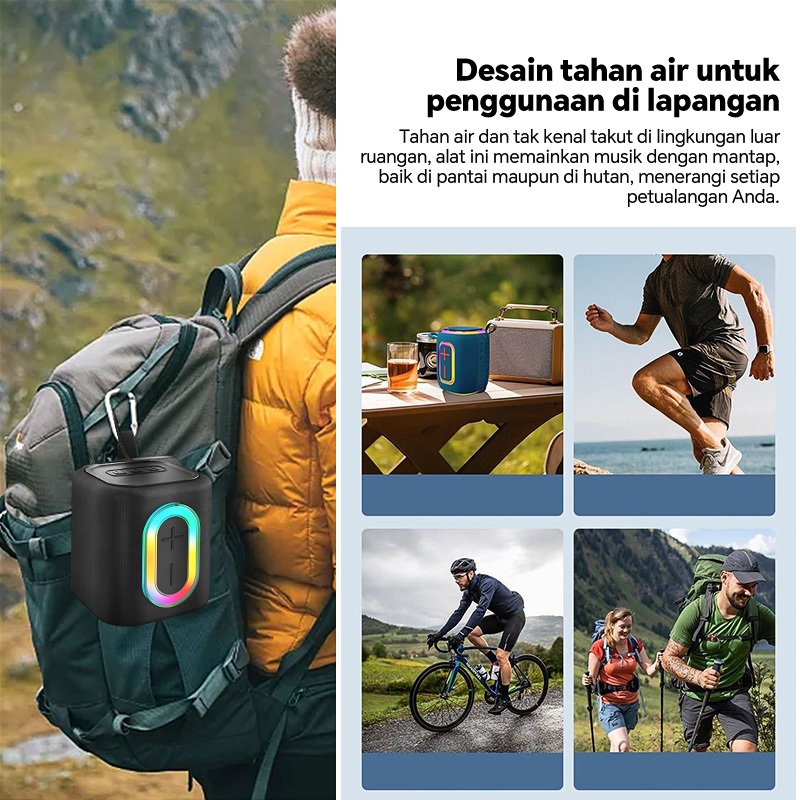 MANU Portabel Wireless Speaker P7 Bluetooth With RGB Light 5W TWS Stereo Wireless Outdoor Speaker IPX6 Tahan Air Nirkabel Speker Musik Box
