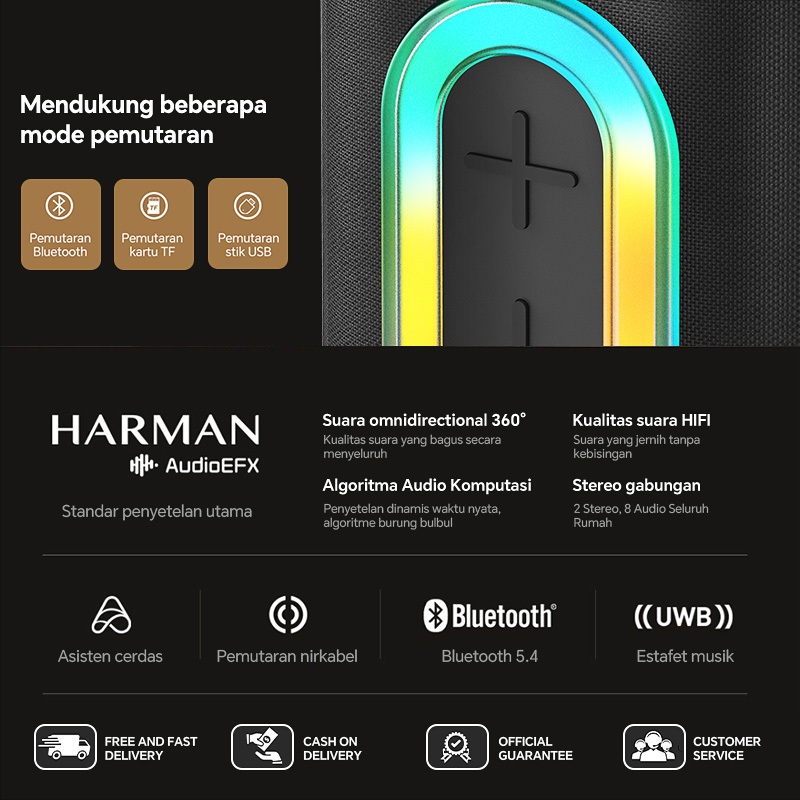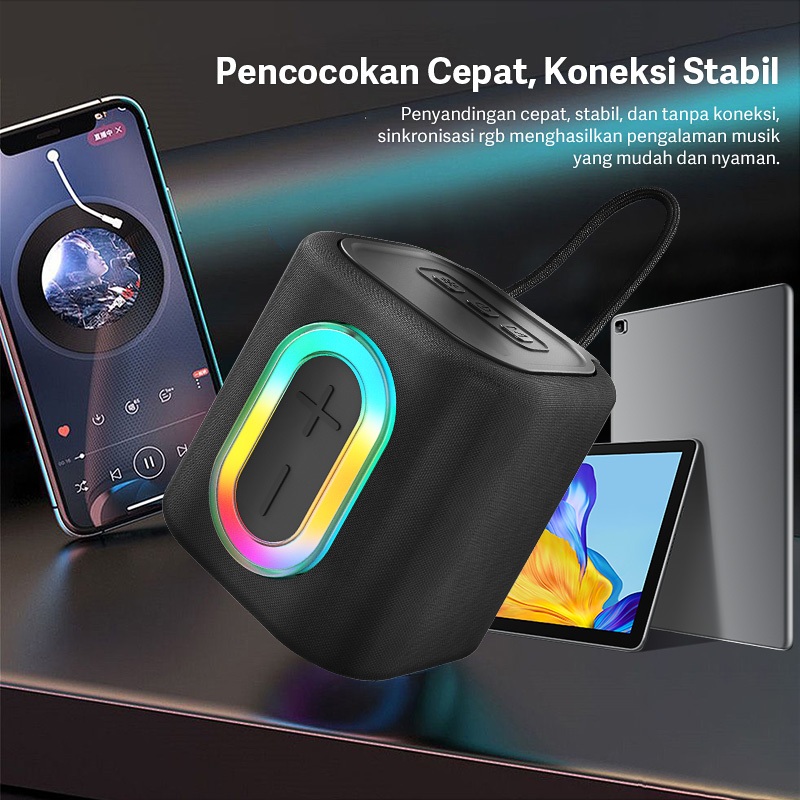 Speaker Bluetooth Nirkabel Speaker Multifungsi dengan Lampu Dinamis Berwarnawarni RGB Subwoofer Tahan Air Portabel
