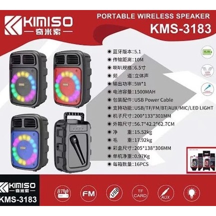Speaker Bluetooth KIMISO 6,8 inch free mic Karaoke Portable 3183