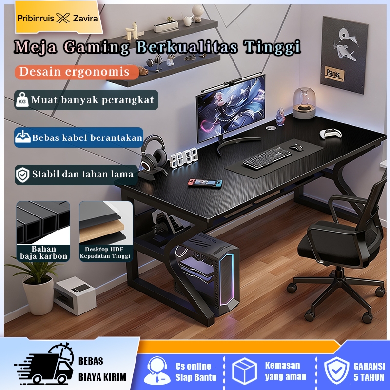 PRIBINRUIS Pola Fiber Karbon Meja Gaming Meja Komputer Minimalis Modern Meja Laptop Meja Belajar Hitam Meja kantor