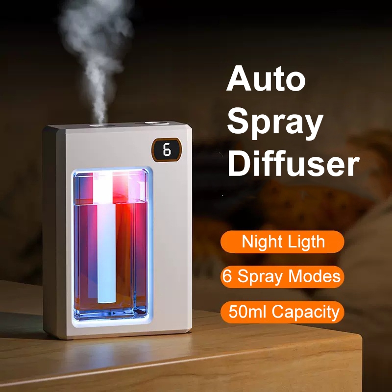pengharum pewangi ruangan otomatis humidifier diffuser aromaterapi 5 mode spray mini LED lampu malam