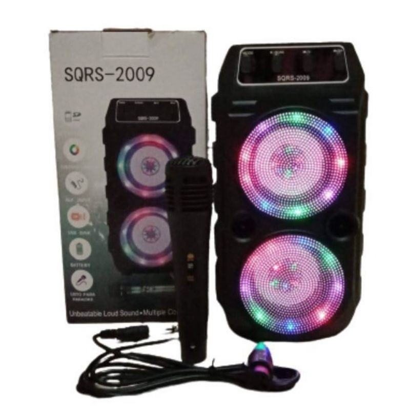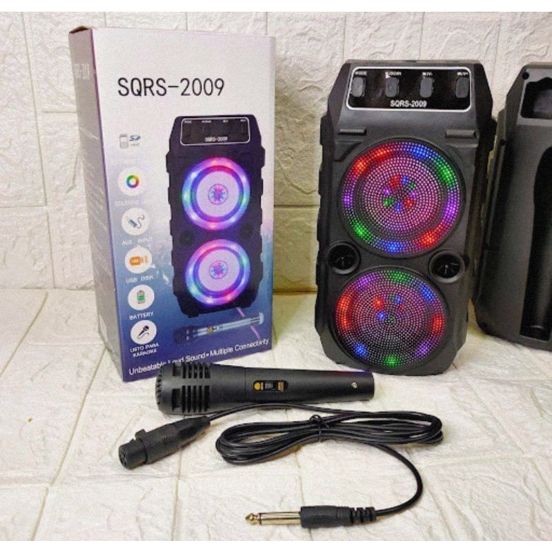 Speaker SQRS 2009 Wireless bluetooth Portable Gratis Mic Karaoke