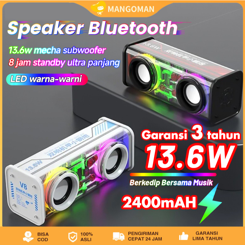 Mecha Speaker Bluetooth Subwoofer Baja Kecil Transparan Audio Portabel Nirkabel Rgb 7 Color Light V8 Speaker Bluetooth