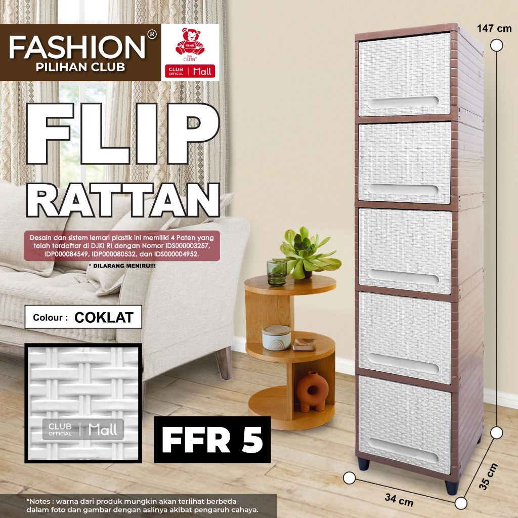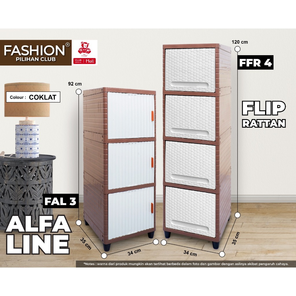CLUB Plastik FASHION Single Susun 2 3 4 5 Lemari Plastik Serbaguna 1 Pintu Alfa Line Rattan