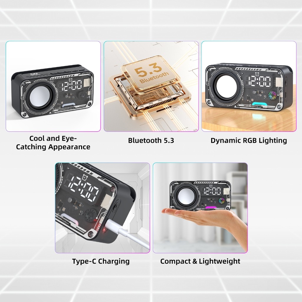 GOOJODOQ AB4088 Jam Speaker Bluetooth Speaker 5.3 Surround Sound System RGB Multifunction Alarm Clock Smart Speaker