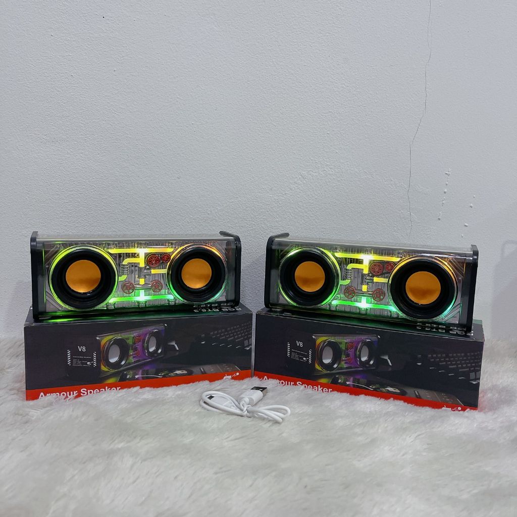 SPEAKER BLUETOOTH MINI LED PORTABLE V8 Dual led Transparan nonpack