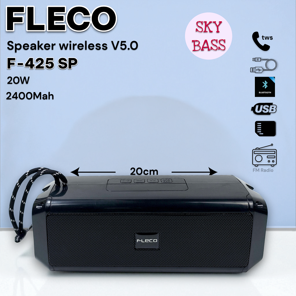 Speaker Bluetooth FLECO F425 SP Sky Bass Wireless Speaker 20W Radio FM, USB, TF Card, dan AUX