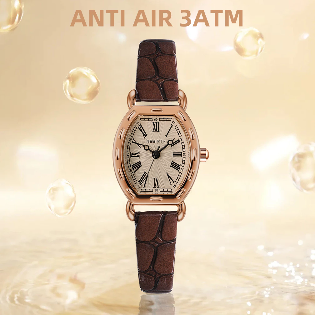 REBIRTH Jam Tangan Wanita Anti Air Kuarsa Antik Kasual Tali Kulit Jam Tangan Cewek Original