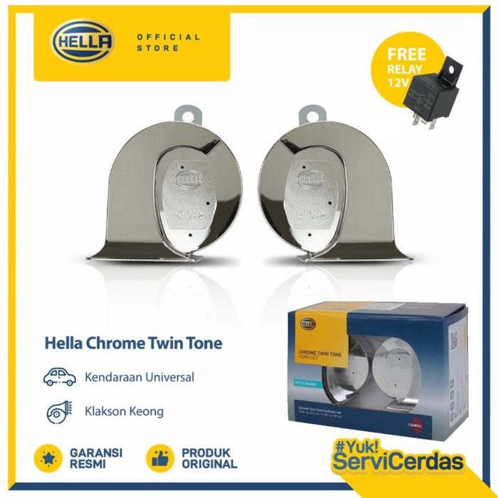 Klakson Mobil Keong Hella Chrome Twin Tone 12V Include Relay - Klakson motor - Twin Tone 12V + Relay