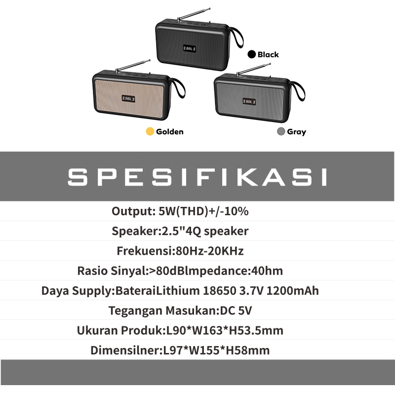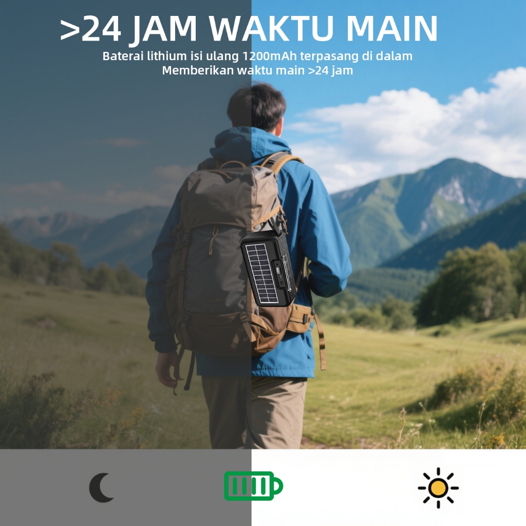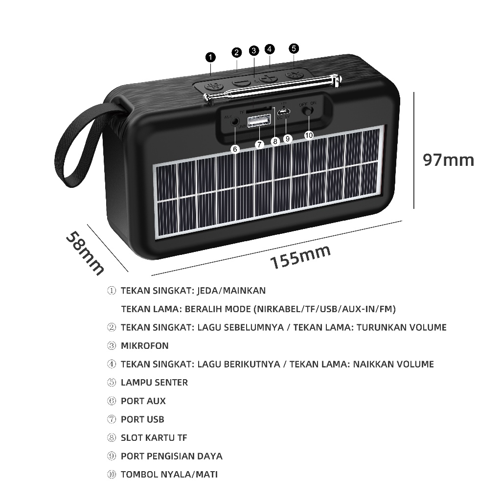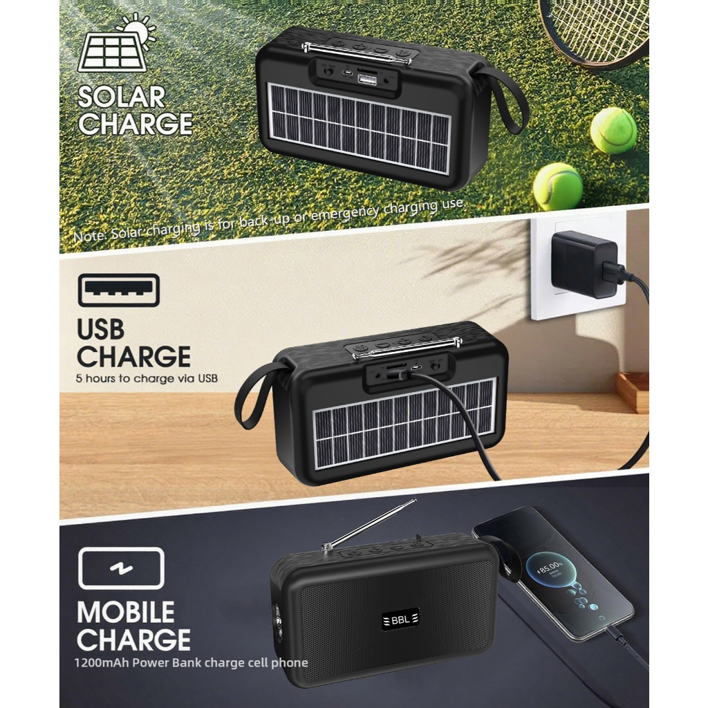 BBL07 Speaker Portable Bluetooth Solar Powerbank SOS Flashlight FM Radio LED Lampu