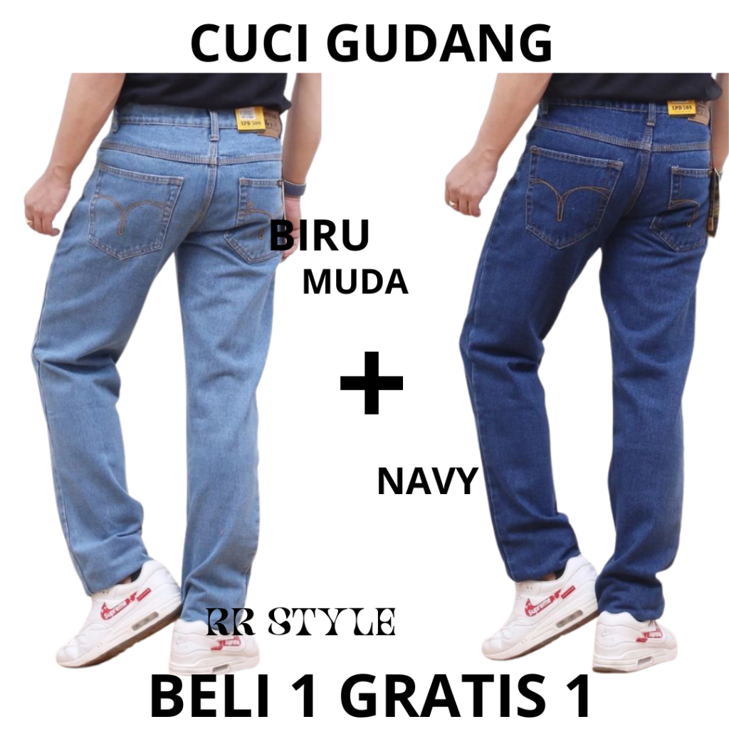 CUCI GUDANG BELI 1 GRATIS 1 Celana Jeans Pria Dewasa Pola Reguler Standar Bahan Tebal Terbaru