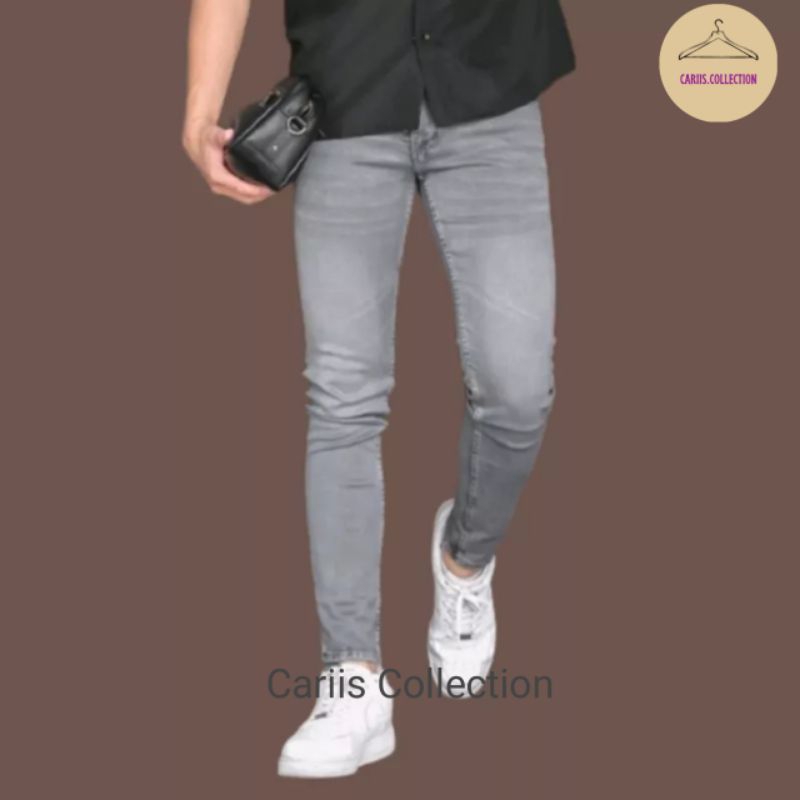 Celana Jeans Pria Skinny Grey Slimfit Strech Sofjeans Panjang Abu abu No Ripped