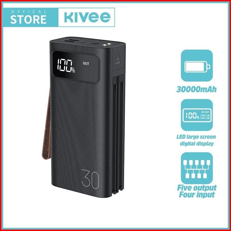 Hot Kivee Powerbank Portabel Pt302p Black 30000mah With Kabel Data Fast Charging Multi-output Asli