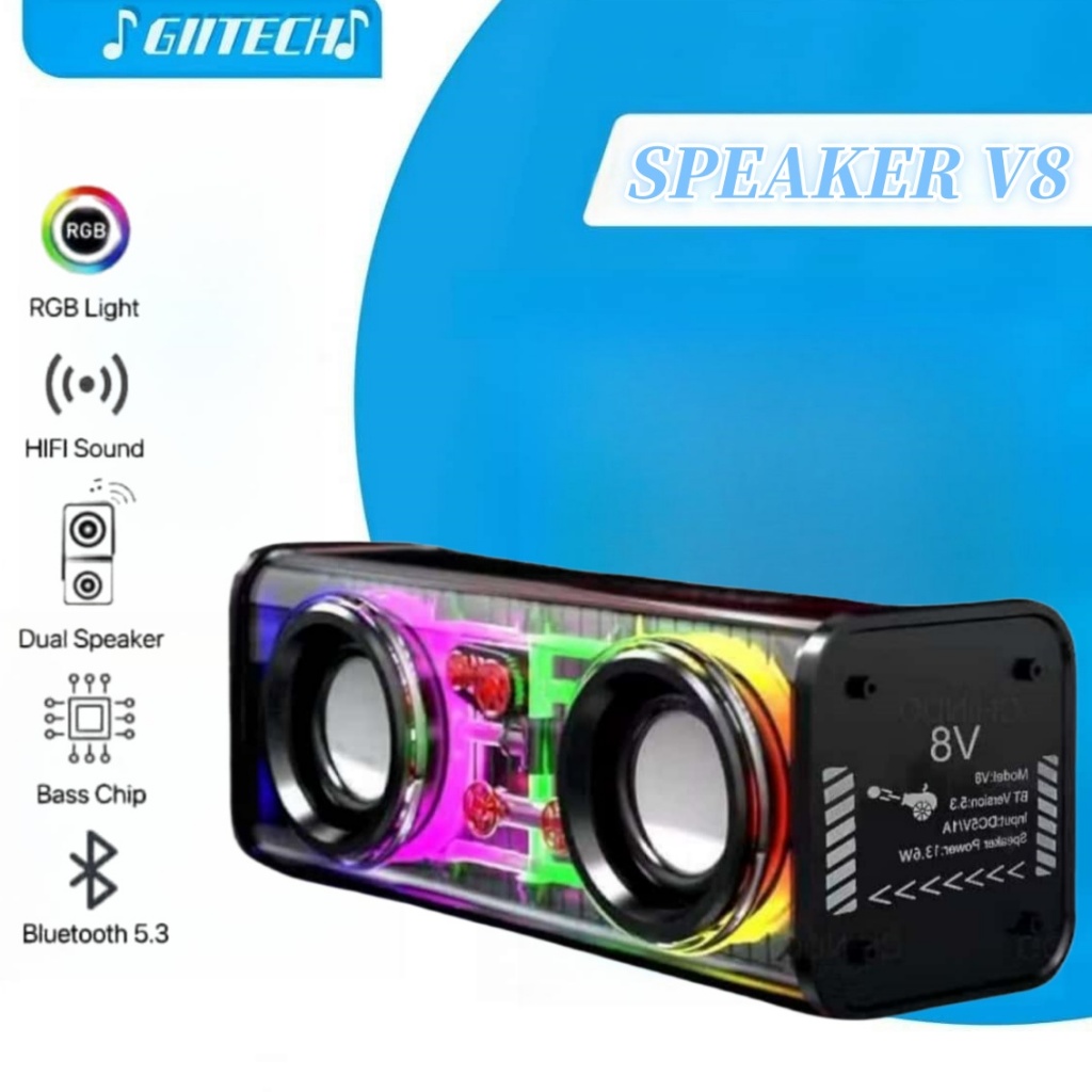 Speaker Bluetooth Cyberpunk Speaker Bass V8 Musik Subwoofer Lampu LED RGB Speaker Mecha Transparan Speaker Bluetooth