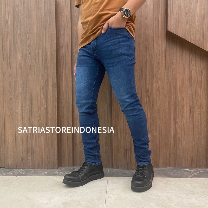 Satria Store, Celana Jeans Pria Slim Fit Celana Panjang Pria Stretch Dark Retro Kekinian