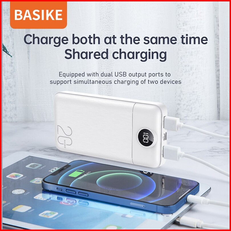 Basike Powerbank 20000 Mah Power Bank Fast Charging Dual Usb For Iphone Xiaomi Samsung