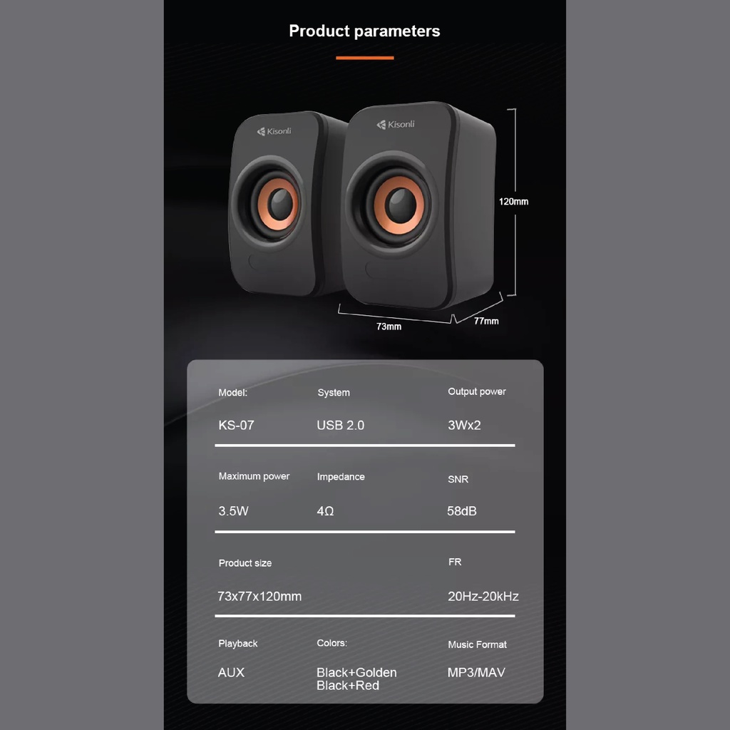 KISONLI Gaming Speaker Laptop Komputer KS07 Dual Bass With Volume Control