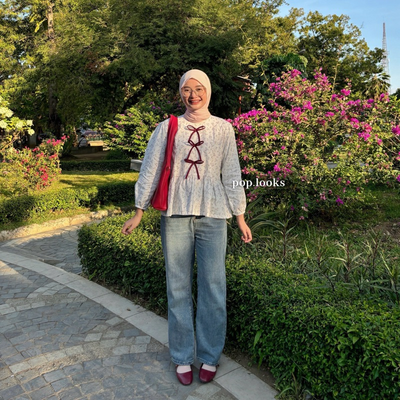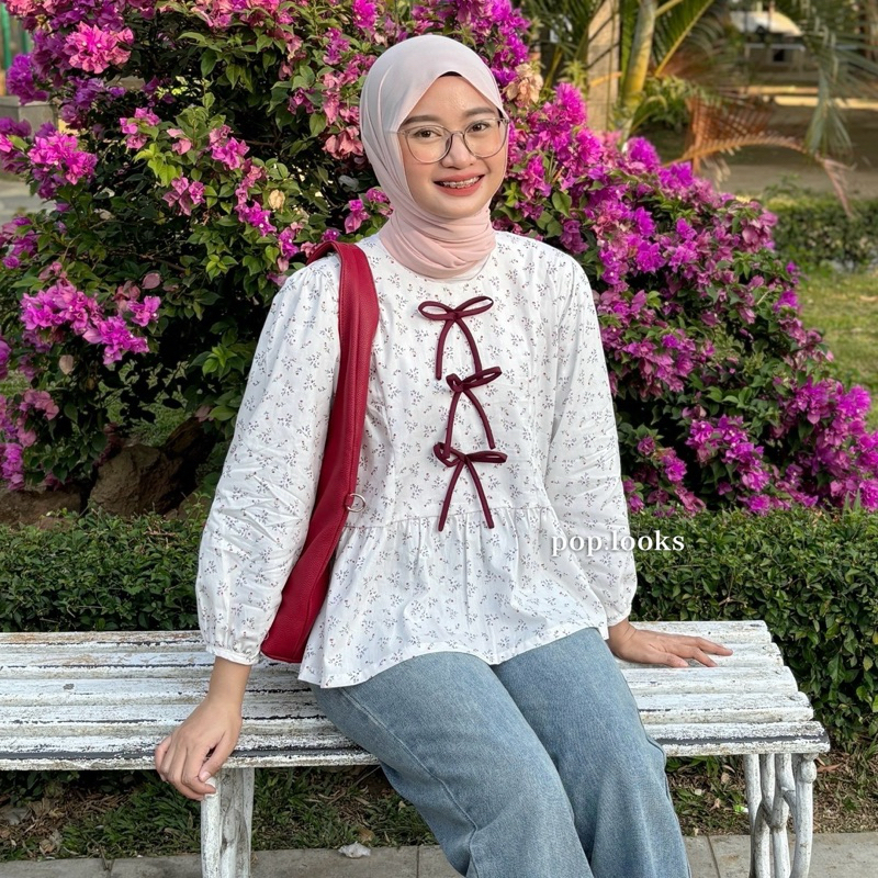 Gardenia Ribbon Blouse Pop.looks Katun Resleting