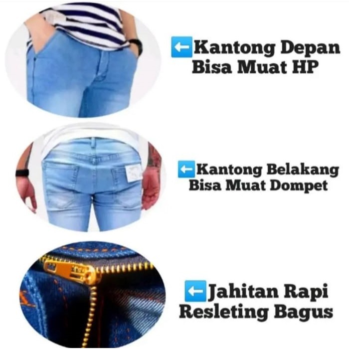 Promo Murah Beli 1 Gratis 1 Celana Jeans Panjang Pria Dewasa el Slim fit pensil Premium Melar
