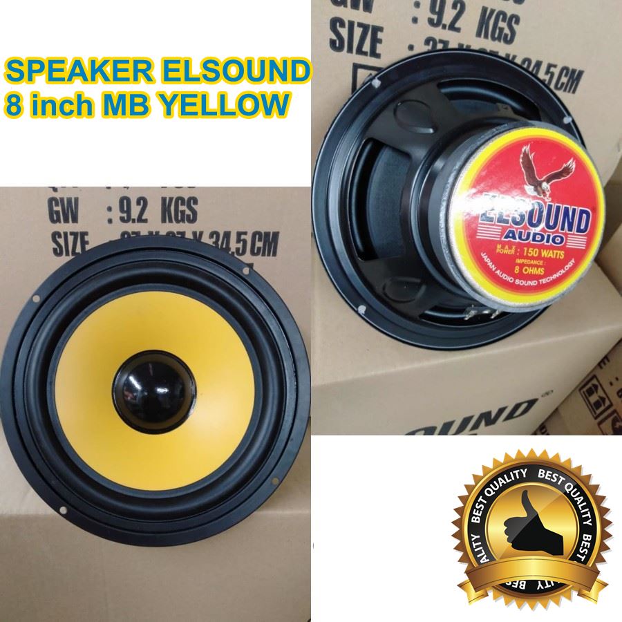 SPEAKER ELSOUND 8" 8 inch WOOFER YELLOW SILVER MAGNET BESAR 150 Watt JAPAN AUDIO