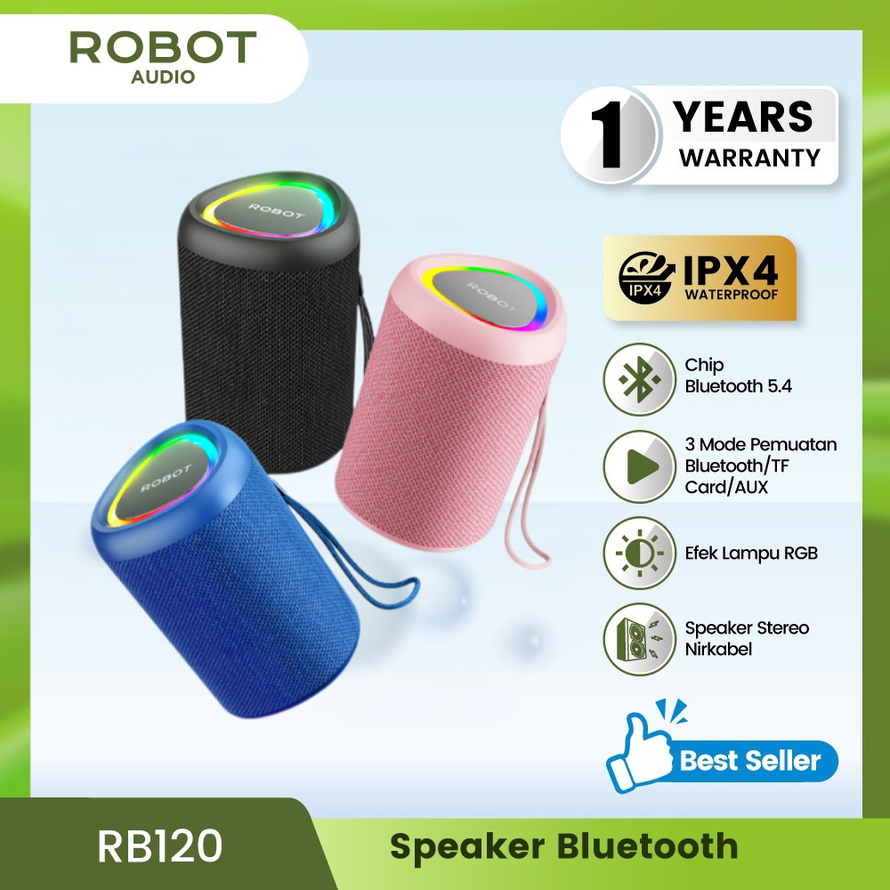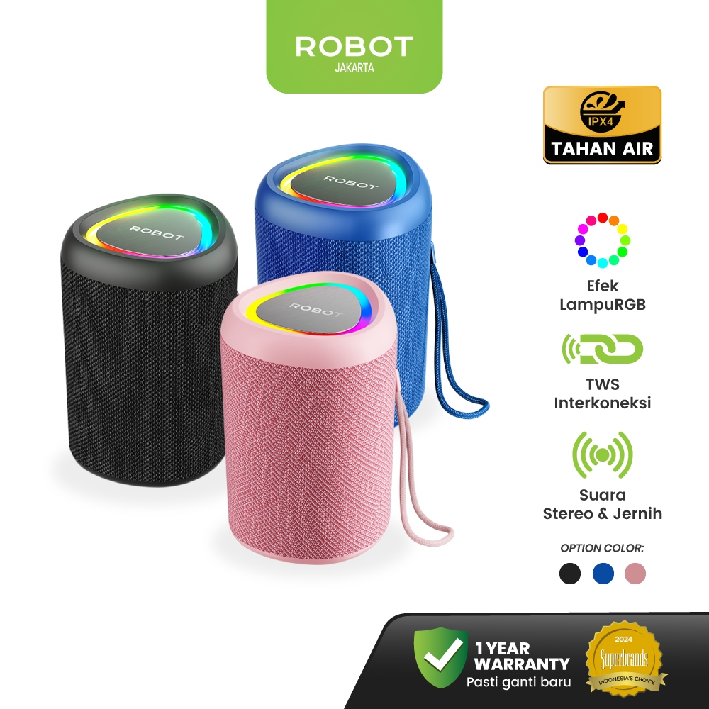 ROBOT Speaker Bluetooth Super Bass Portabel Tahan Air Waterproof IPX 4 RGB 10W With Bluetooth 5.3 1200mAH Extra Bass Audio Party Portable