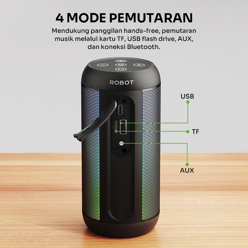 ROBOT Speaker Bluetooth Superbass 10W IPX4 With RGB Light Speaker Wireless Waterproof RB510 Original Garansi 1 Tahun