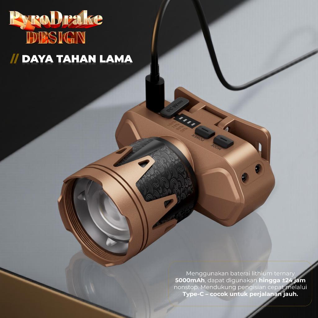 AOKI SENTER KEPALA PYRODRAKE | BISA MENYULUT API | SENSOR GERAK | 3 WARNA CAHAYA | USB RECHARGE