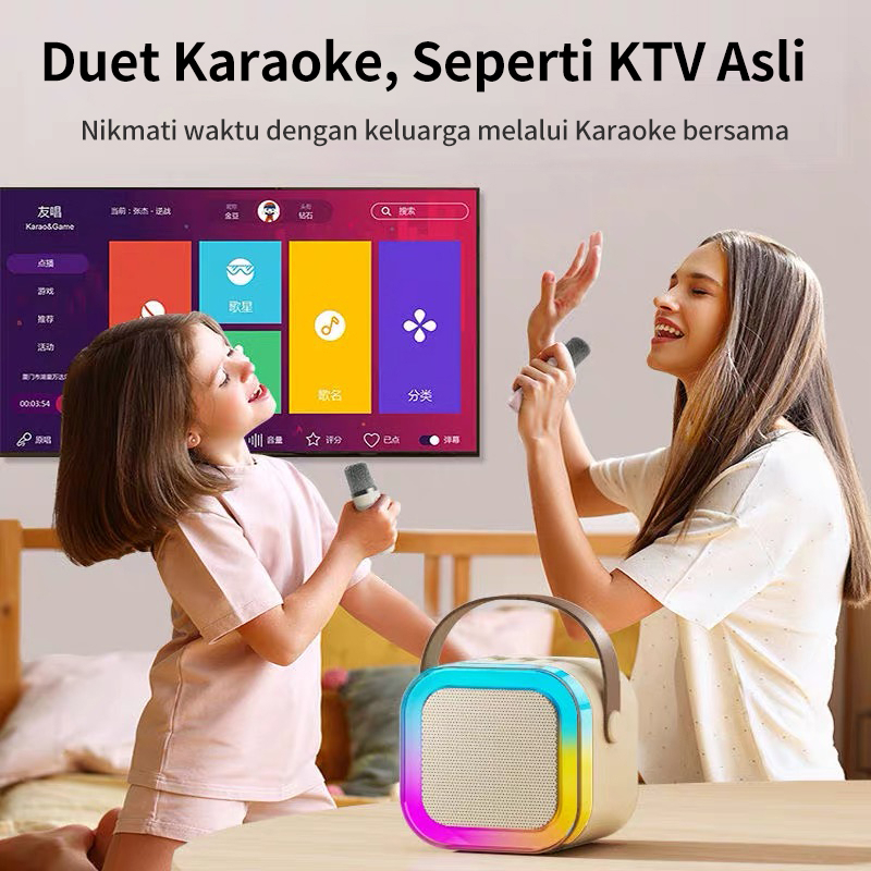 UPLU Mini Speaker Wireless Bluetooth Karaoke Full Bass Portable 3D Stereo RGB Light With 2 Mic