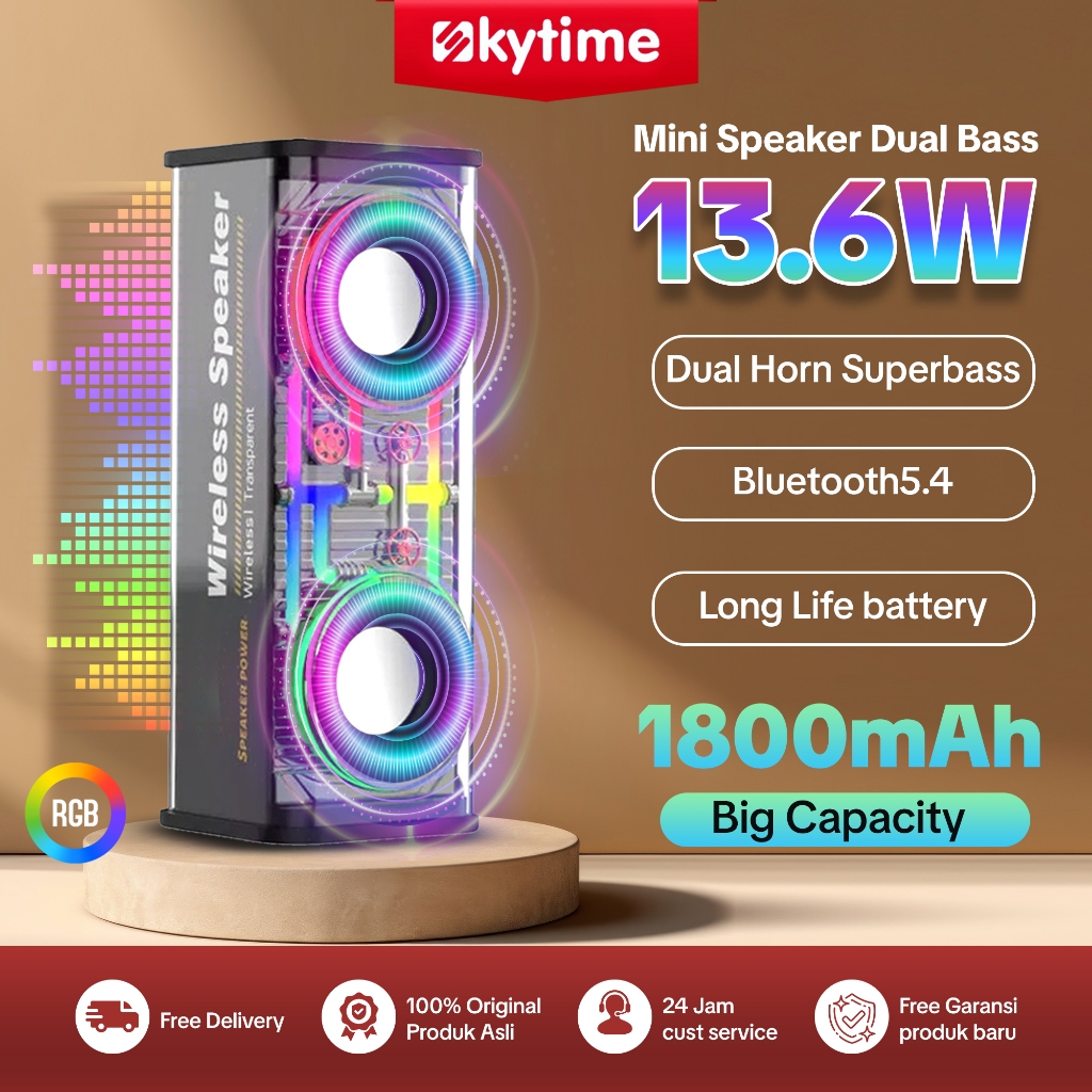 Skytime S38 Speaker Bluetooth Cyberpunk Speaker Bass Stereo RGB TWS Portable LED Light Speaker Mechanical Style Full Bass