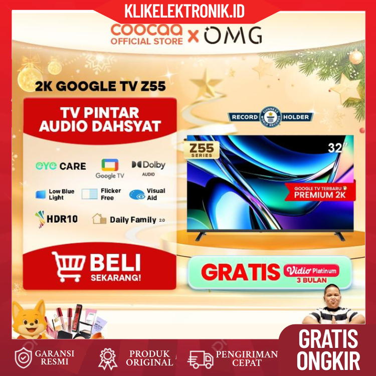 GRATIS ONGKIR COOCAA TV 32 inch Z55 - Google TV - Eye Care 5.0 - Dolby Audio - HDR10 - (COOCAA 32Z55)