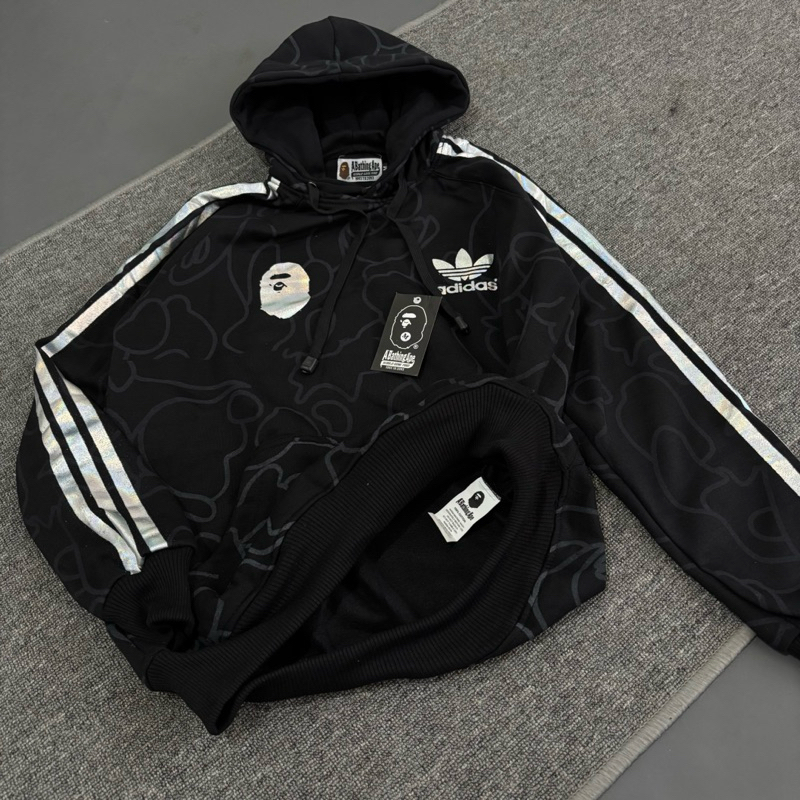 SWEATER HOODIE ADIDAS X BAPE FULPRINT REFLEKTIP PELANGI / SWEATER HOODIE HOLOGRAM FULTAG PREMIUM