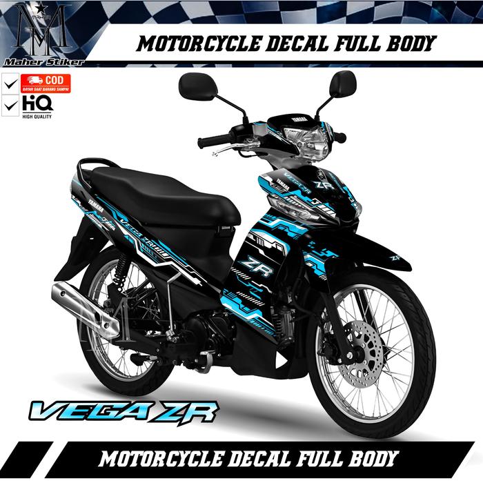 STIKER MOTOR DECAL FULL BODY MOTOR VEGA ZR MOTIF HITECH MOTORCYCLE - BIRU, PAKAI LAMINASI