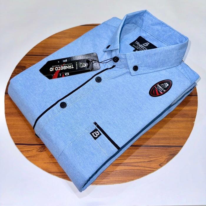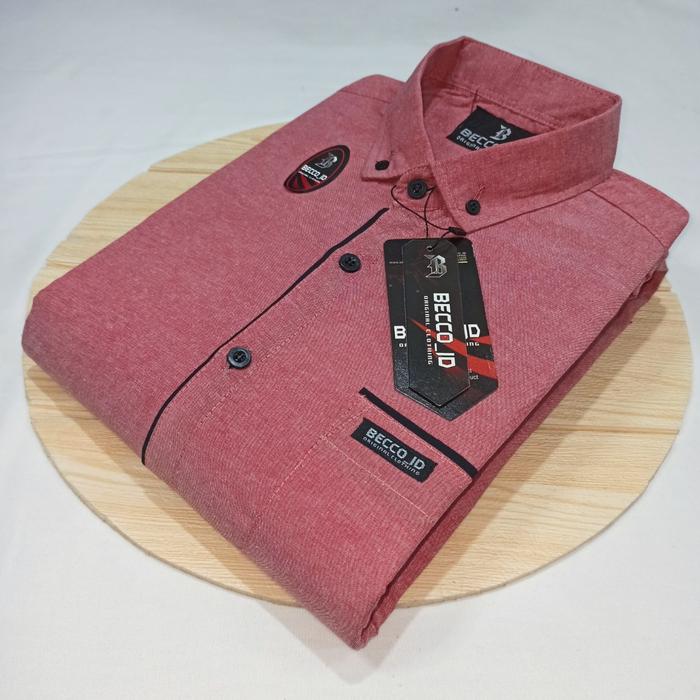 BECCO kemeja polos lengan pendek pria list formal kemeja casual original distro