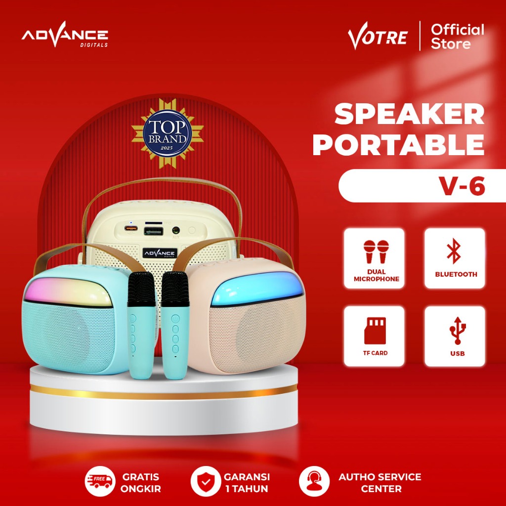 Advance V6 Portable Speaker 2 MIC Karaoke Plus Lampu Bluetooth Karaoke Speaker Komputer Speaker Rak Buku Suara Bass Garansi Resmi