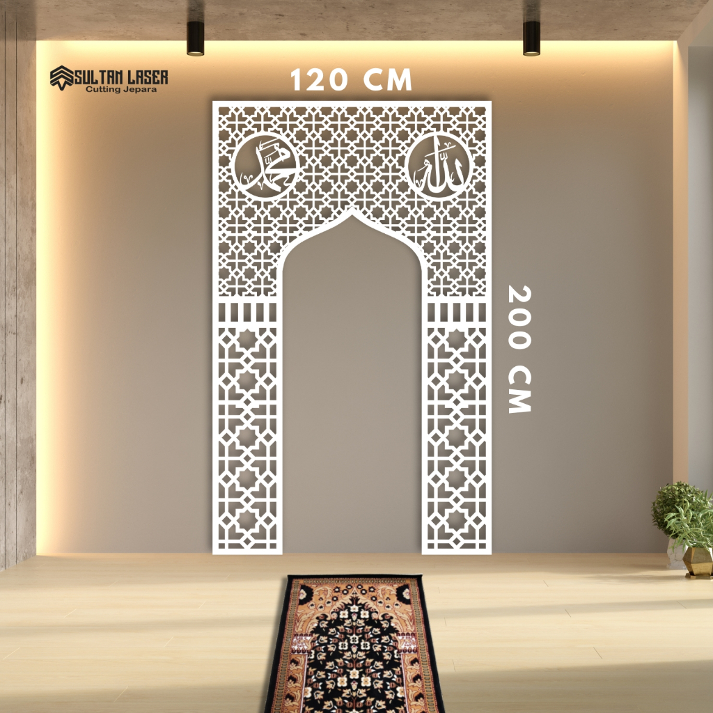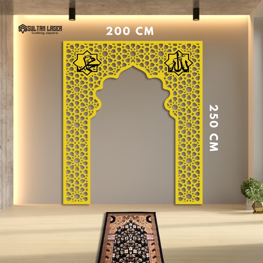 Mihrab Mushola Besar Hiasan dinding rumah Islami Lafadz Allah Muhammad Modern Elegan Estetik KT01