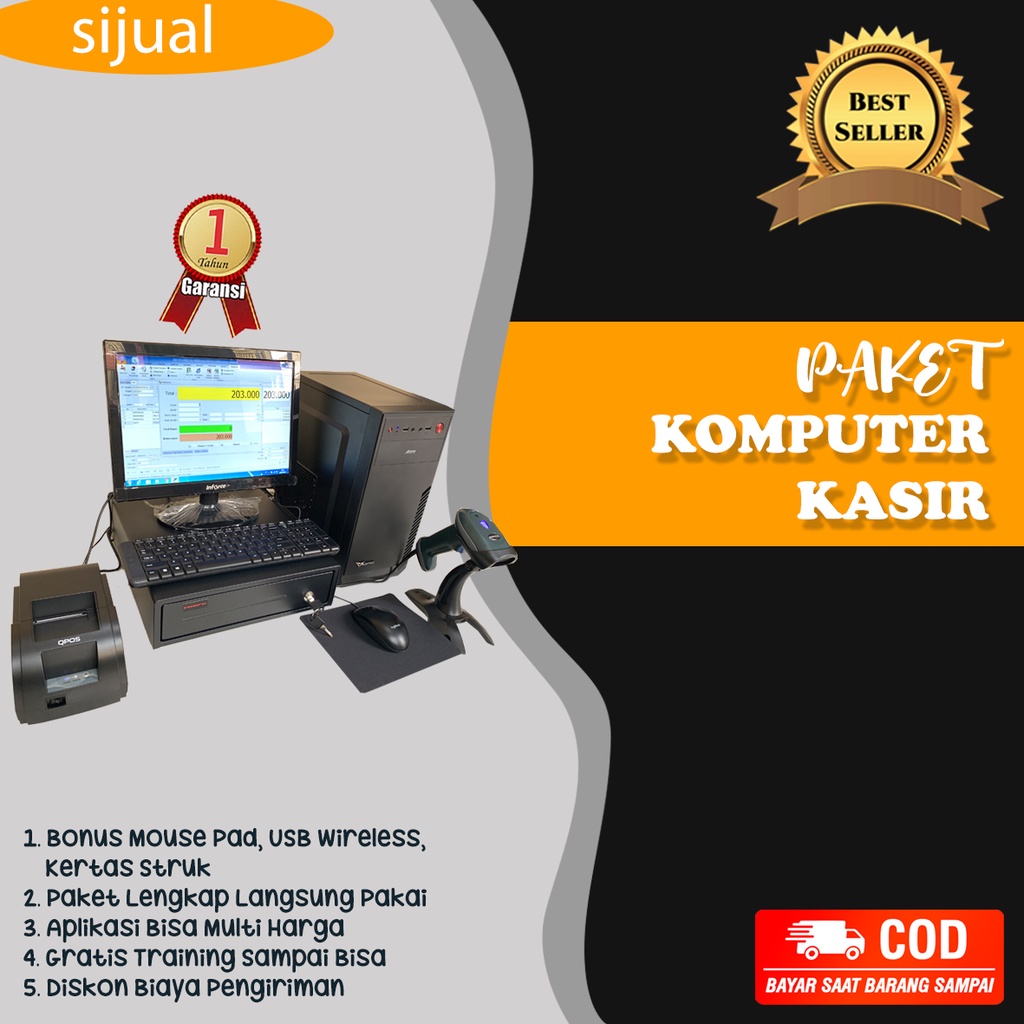KOMPUTER KASIR LENGKAP DENGAN APLIKASI KASIR SATU SET SIAP PAKAI MESIN KASIR MURAH