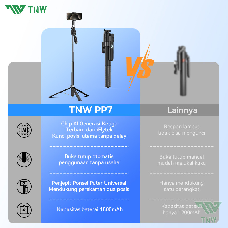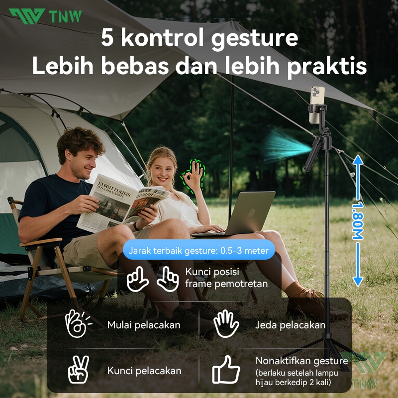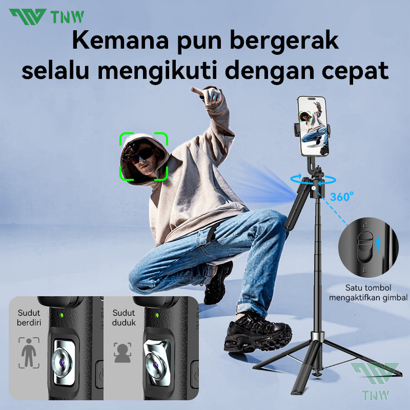 TNW PP7 360°AI Face Tracking Tripod Automatic Tongsis Tripod Pop Up Selfie Stick Gimbal Stabilizer Gesture Control Aluminium Quadpod Tongsis