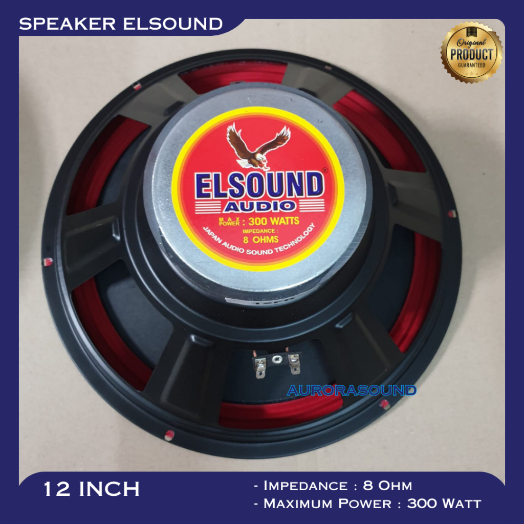 SPEAKER ELSOUND 12 INCH 12IN 12" FULL RANGE WOOFER MERAH HITAM 300 WATT ORIGINAL