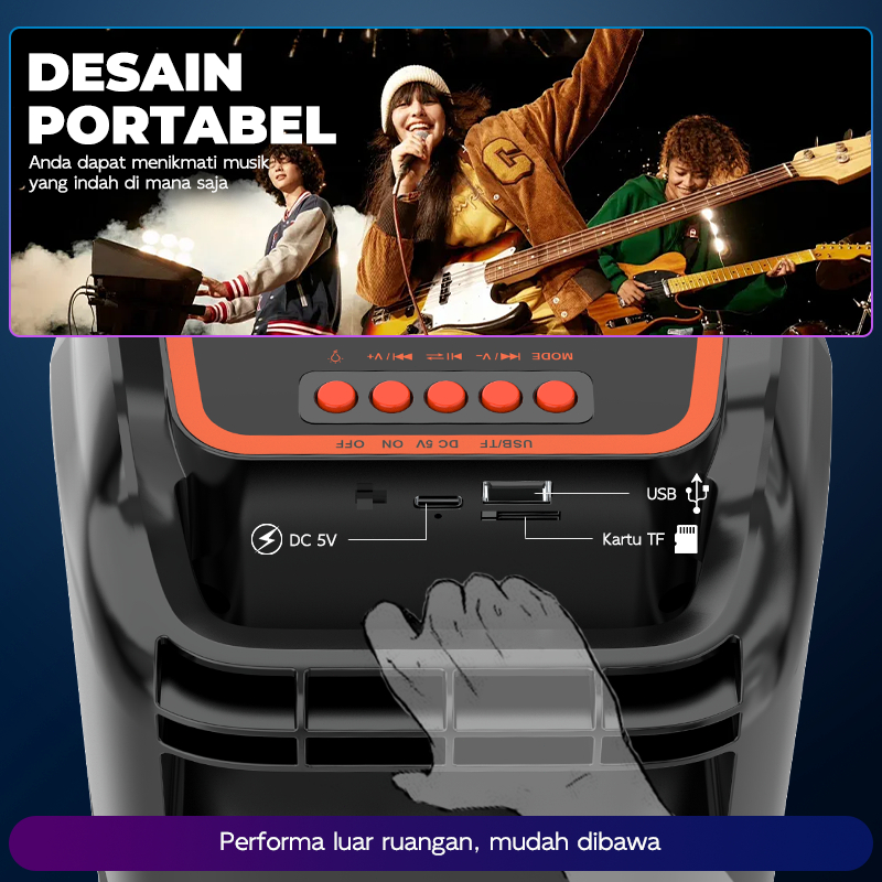 Speaker bluetooth super bass karaoke with 2Free Wireless mic Outdoor portable salon aktif bluetooth full bass