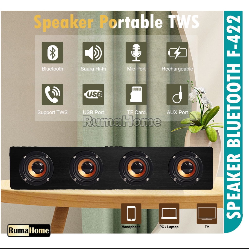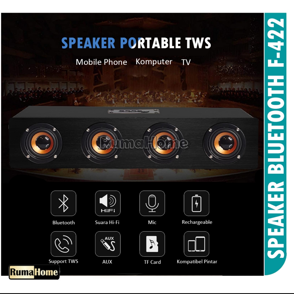 Soundbar F422 Speaker Wireless theater audio, Stereo subwoofer Speaker Portable Garansi Resmi 1 Tahun