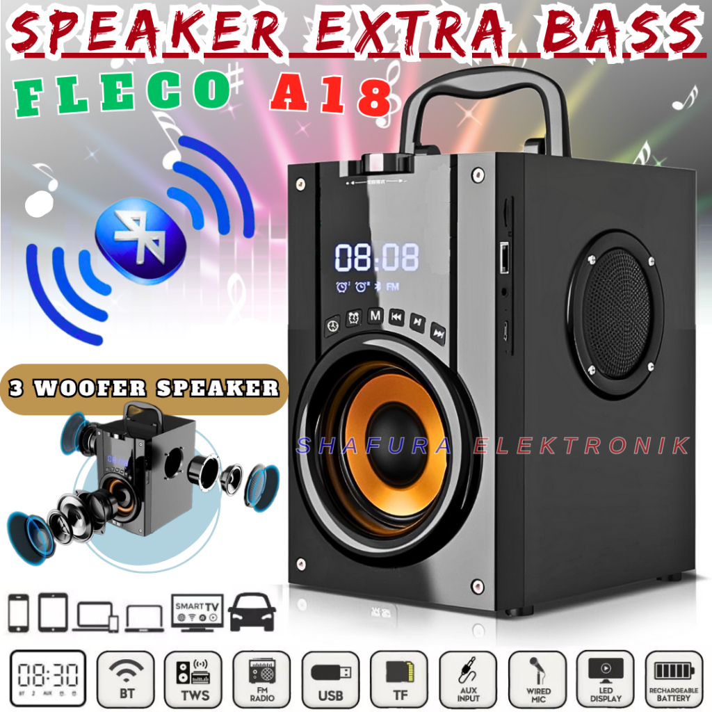 Fleco A18 Speaker Tv Full Bass, Hp, Laptop, Komputer Layar BesarJamAlarmKaraoke Jack 3.5mmUsbTf CardAuxRadio Fm Antena