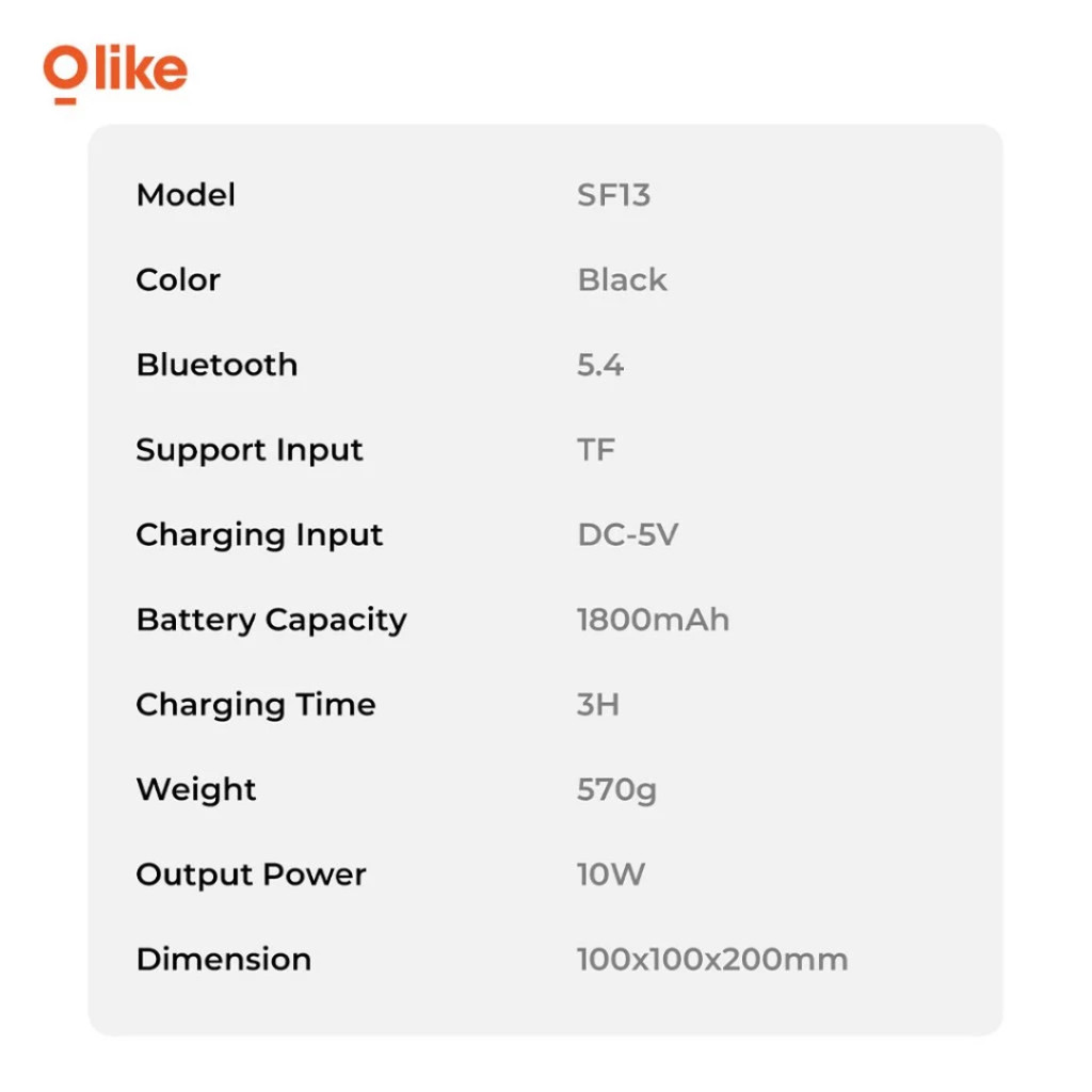 OLIKE SF13 Speaker Bluetooth 5.4 Subwoofer Tws Conectivity 10W Support Radio