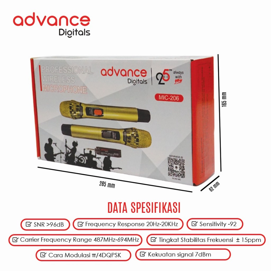 Advance Professional MIC206 Double Mic Wireless Mikrofon Speaker Tanpa Kabel Recharger Garansi Resmi 1 Tahun