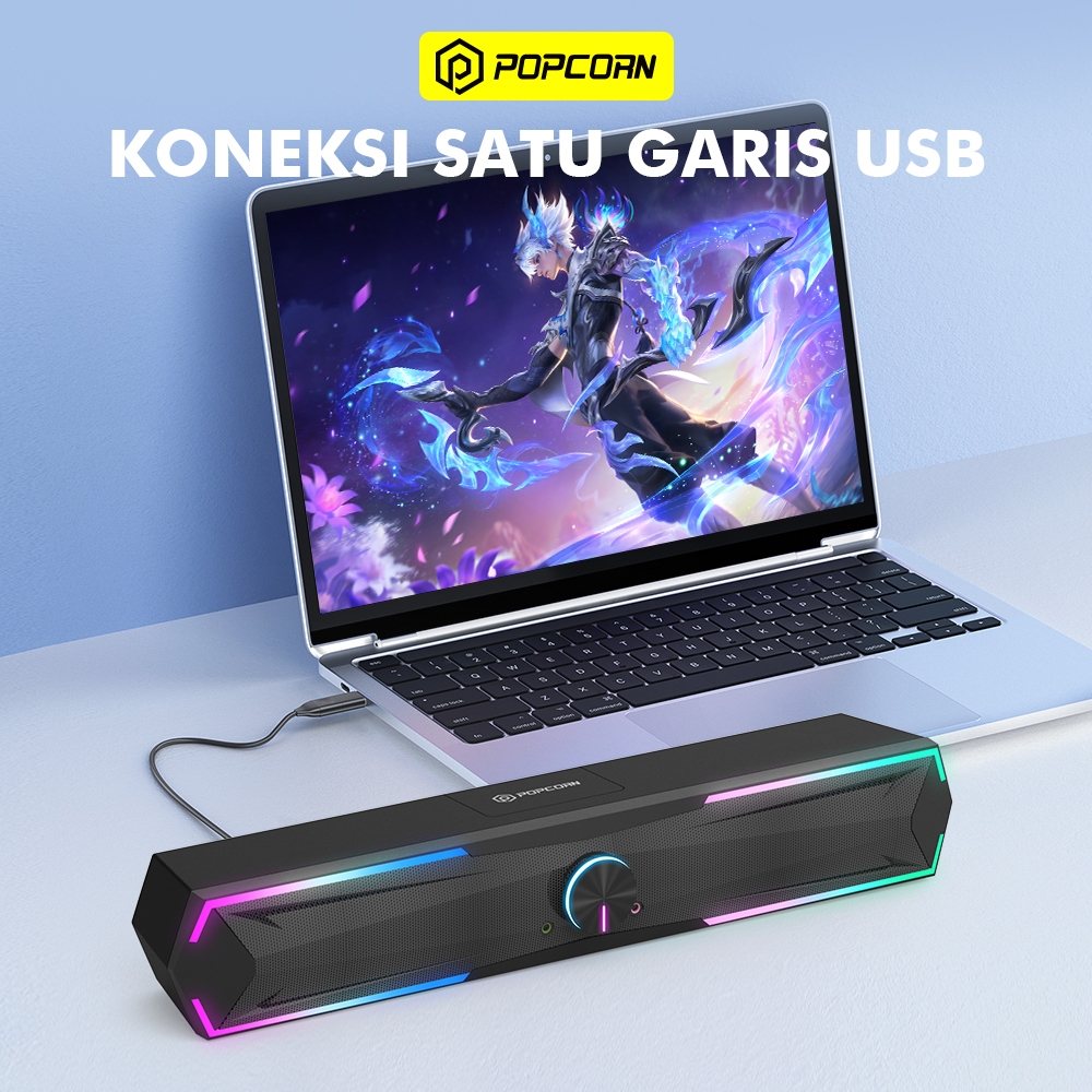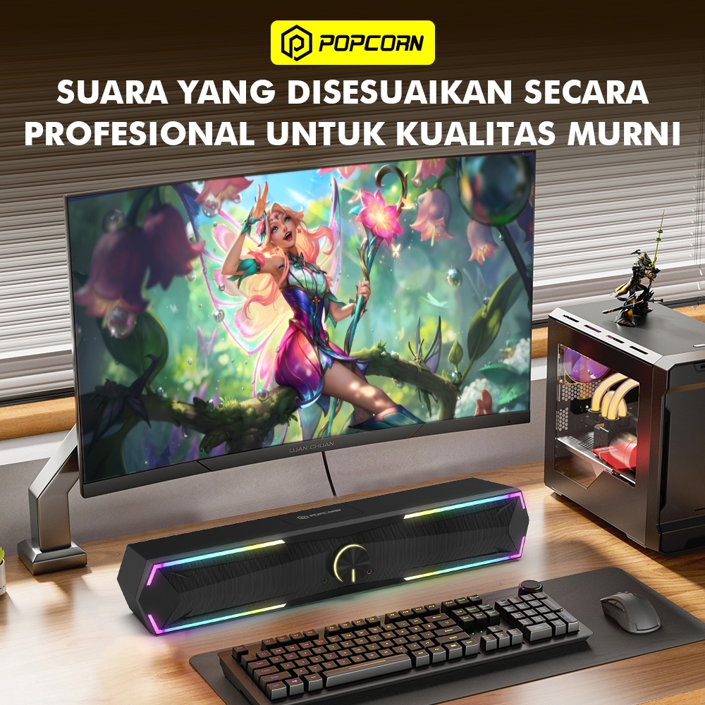 Popcorn CS012 Soundbar RGB LED Surround Gaming Speaker Bluetooth 5.3 USB 3.5mm Audio with Mic