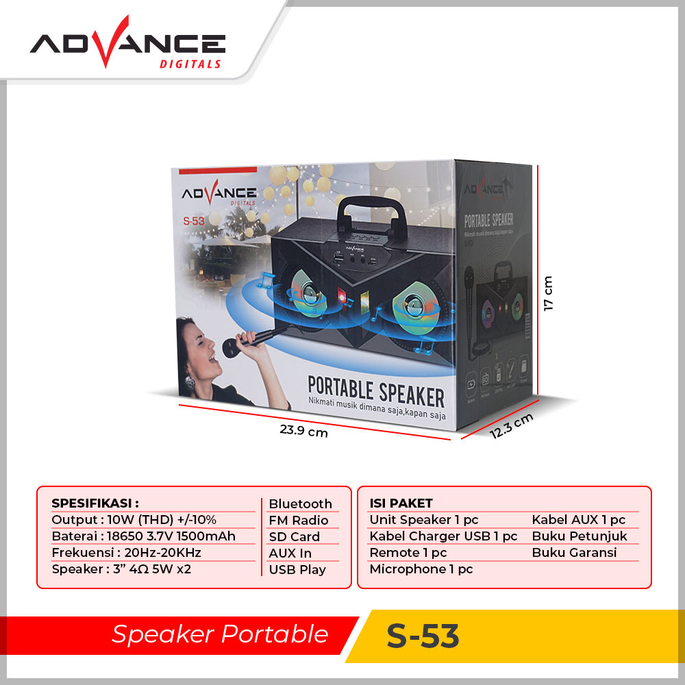 Advance S53 Speaker 5 inch Bluetooth Gratis 1 Mic Karoke Murah Garansi Resmi 1 Tahun