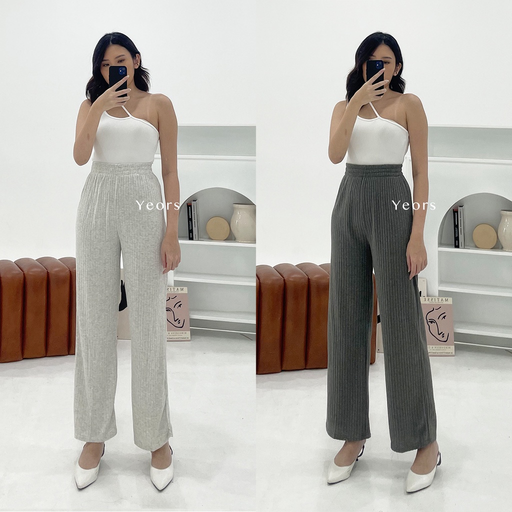 Yeors - Celana Murah Berkualitas Kulot Knit Premium - Long Cullote Meera Pants - Korean Loose Pants Trousers Wanita - Lo