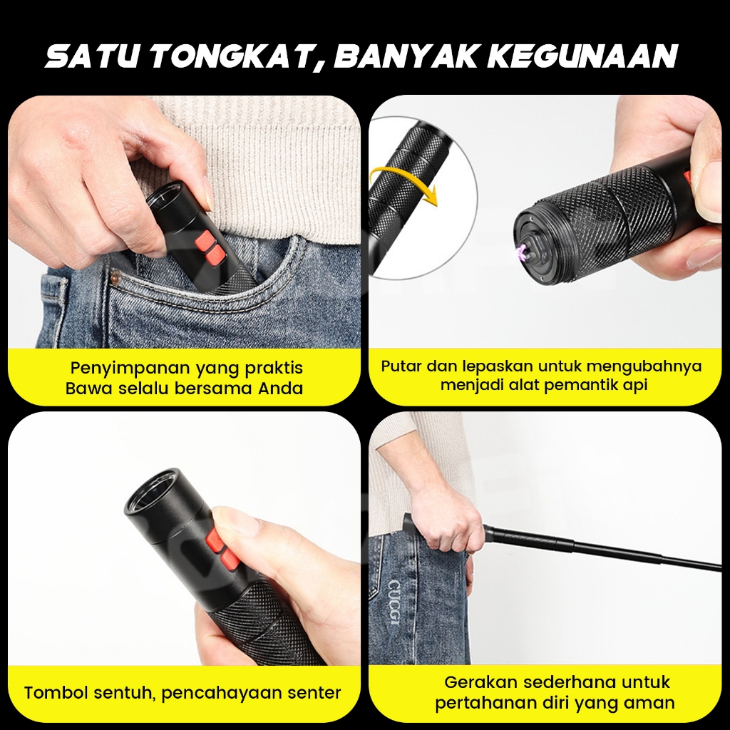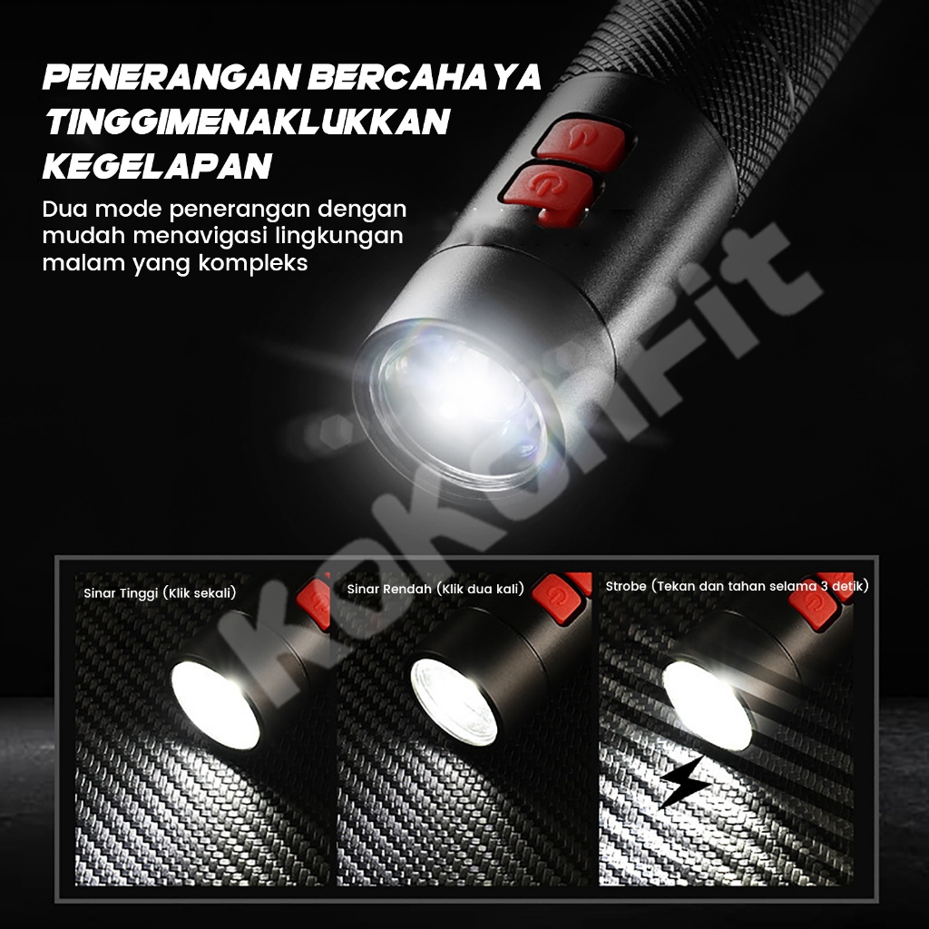 Senter Mini 800LM Portabel Zoom LED 30W Buzzer Kilat Multifungsi Emergency Flashlight 3000mAh-USB Type C Rechargeable